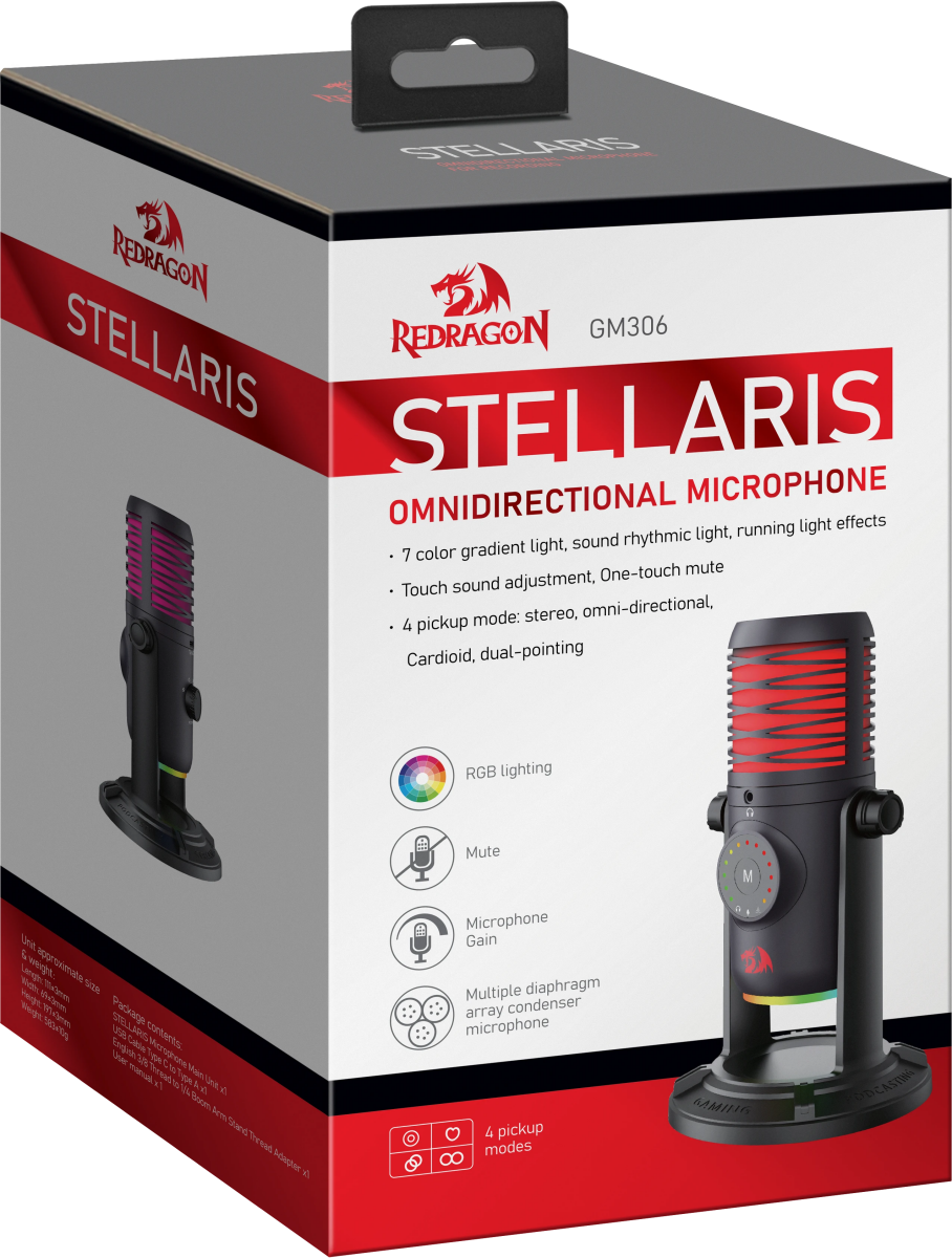Микрофон Redragon Stellaris GM306 по низкой цене с бесплатной доставкой по Москве (при покупке от 50 000 рублей). Вы можете купить за наличный и безналичный расчет, при этом стоимость не изменится.
