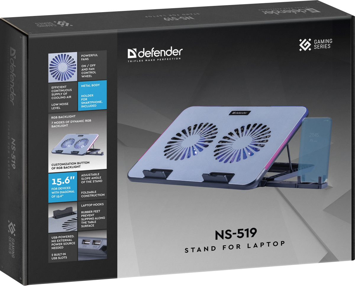 Охлаждающая подставка для ноутбука Defender NS-519 по низкой цене с бесплатной доставкой по Москве (при покупке от 50 000 рублей). Вы можете купить за наличный и безналичный расчет, при этом стоимость не изменится.