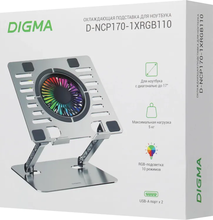 Охлаждающая подставка для ноутбука Digma D-NCP170-1XRGB110 по низкой цене с бесплатной доставкой по Москве (при покупке от 50 000 рублей). Вы можете купить за наличный и безналичный расчет, при этом стоимость не изменится.
