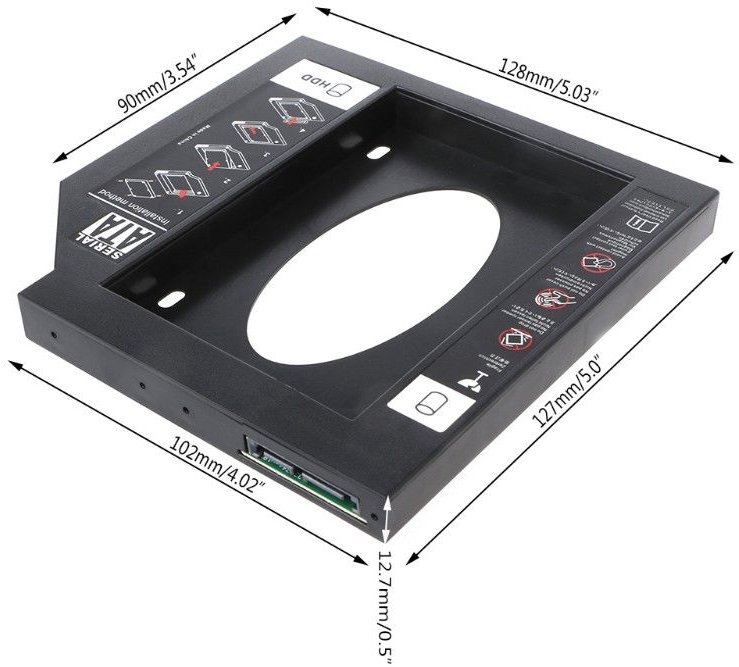 шасси для 2.5” SATA HDD для установки в SATA отсек (12.7 мм) оптического привода ноутбука