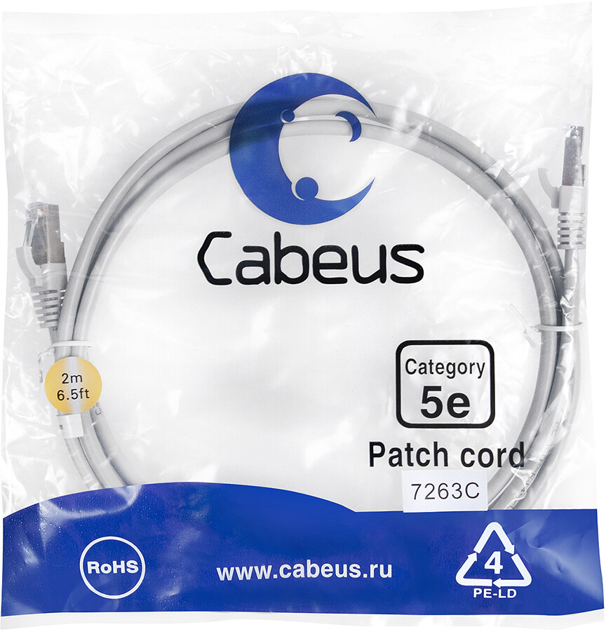 Описание Патч-корд Cabeus PC-FTP-RJ45-Cat.5e-2m, 2м