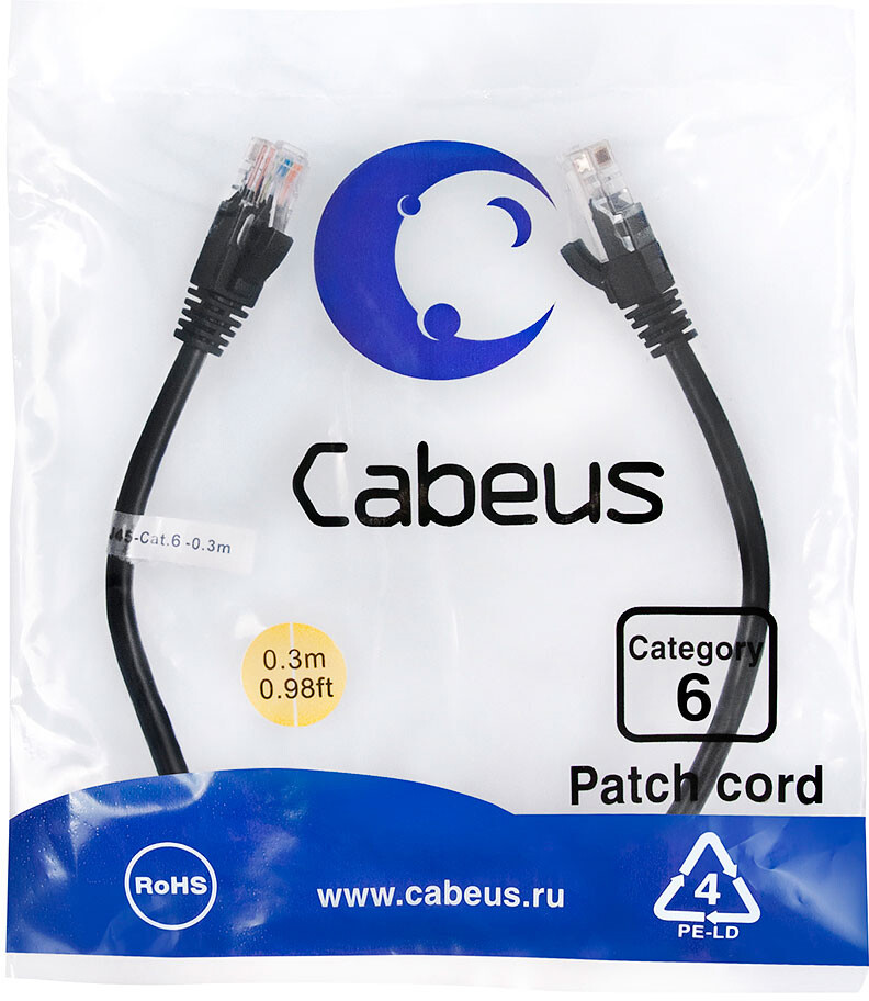 Патч-корд Cabeus PC-UTP-RJ45-Cat.6-0.3m-BK, 0.3м по низкой цене с бесплатной доставкой по Москве (при покупке от 20 000 рублей). Вы можете купить за наличный и безналичный расчет, при этом стоимость не изменится.