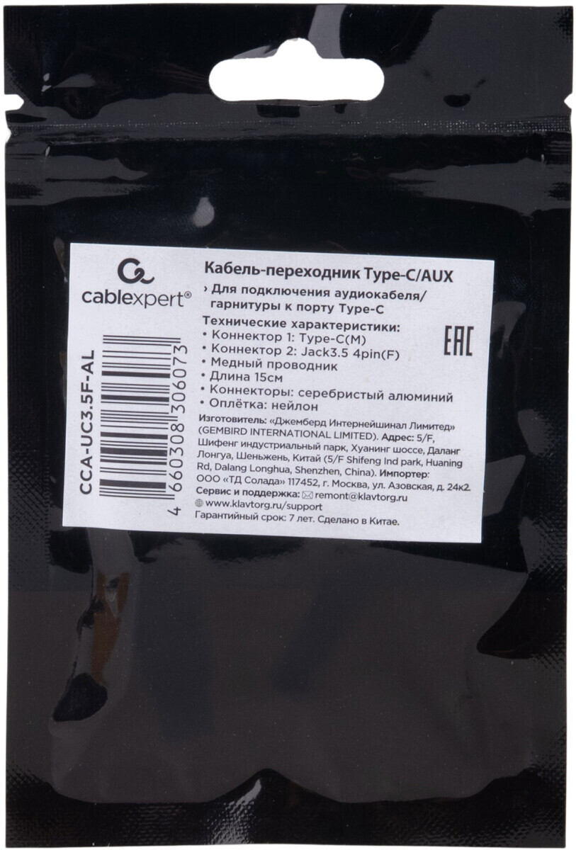 Переходник USB Type-C - 3.5 Jack (F), 0.15м, Cablexpert CCA-UC3.5F-AL по низкой цене с бесплатной доставкой по Москве (при покупке от 50 000 рублей). Вы можете купить за наличный и безналичный расчет, при этом стоимость не изменится.