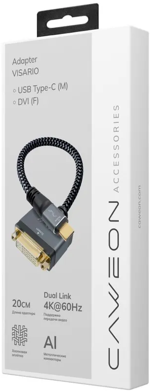 Переходник USB Type-C - DVI (F), 0.2м, Caweon AL-20CM по низкой цене с бесплатной доставкой по Москве (при покупке от 20 000 рублей). Вы можете купить за наличный и безналичный расчет, при этом стоимость не изменится.