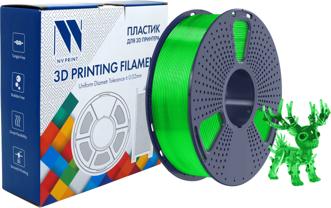 Описание Пластик для 3D принтера NV Print NV-3D-PLA-P-TRANSP-GREEN