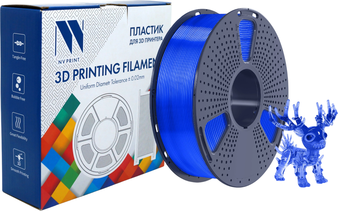 Описание Пластик для 3D принтера NV Print NV-3D-PLA-TRANSP-BLUE