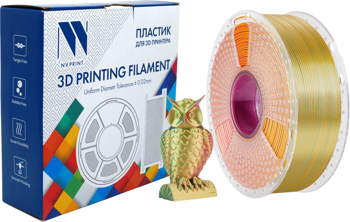Описание Пластик для 3D принтера NV Print NV-3D-SILK-PLA-P-RED-YELLOW-GREEN