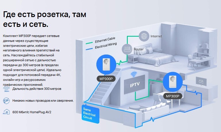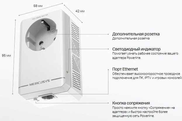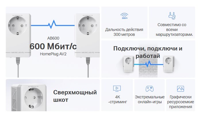 Описание Powerline-адаптер Mercusys MP300P KIT