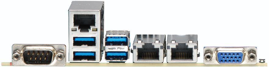 4 x USB 3.0, VGA, 3 x RJ-45, COM