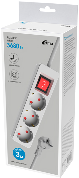 Описание Сетевой фильтр Ritmix RM-330K White