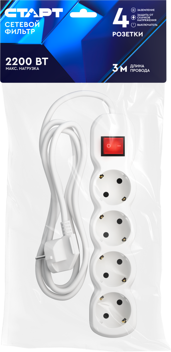 Сетевой фильтр СТАРТ С/УД-Ф S 4x3-ZV