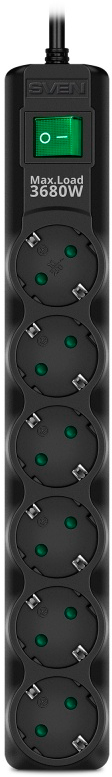 Описание Сетевой фильтр Sven SF-06E-16 Black 3м