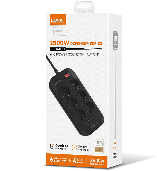 Описание Сетевой удлинитель LDNIO SE6403 Black/Gray
