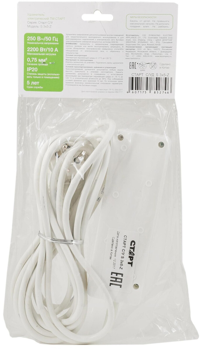 Сетевой удлинитель СТАРТ C/У S 3x5-Z по низкой цене с бесплатной доставкой по Москве (при покупке от 20 000 рублей). Вы можете купить за наличный и безналичный расчет, при этом стоимость не изменится.