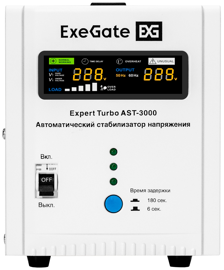 Стабилизатор напряжения ExeGate Expert Turbo AST-3000 по низкой цене с бесплатной доставкой по Москве (при покупке от 50 000 рублей). Вы можете купить за наличный и безналичный расчет, при этом стоимость не изменится.