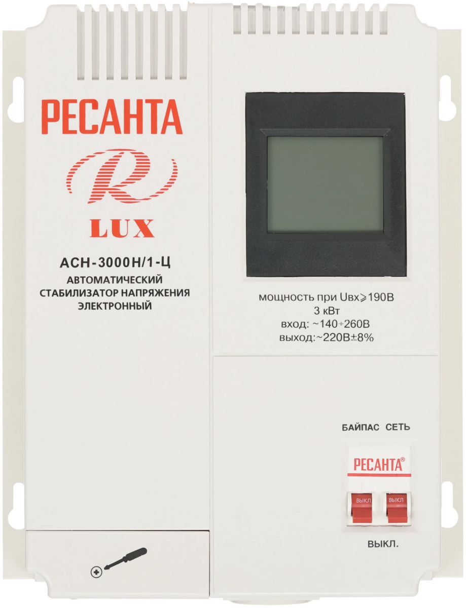 Стабилизатор напряжения Ресанта АСН 3000 Н/1-Ц по низкой цене с бесплатной доставкой по Москве (при покупке от 50 000 рублей). Вы можете купить за наличный и безналичный расчет, при этом стоимость не изменится.