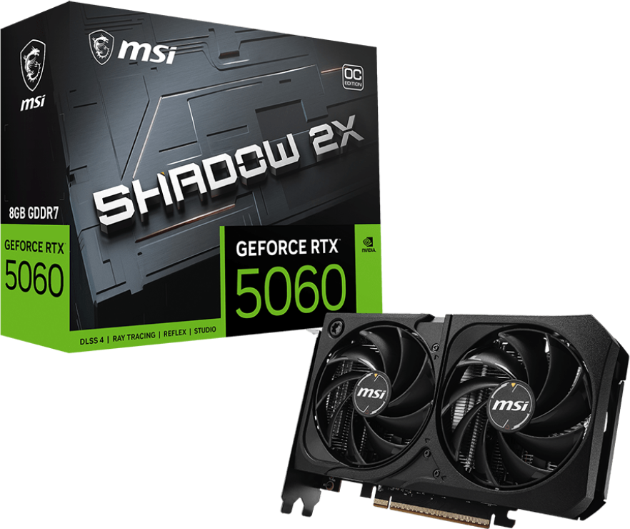 Видеокарта NVIDIA GeForce RTX 5060 MSI OC 8GB (RTX 5060 8G SHADOW 2X OC MAX) по низкой цене с бесплатной доставкой по Москве (при покупке от 50 000 рублей). Вы можете купить за наличный и безналичный расчет, при этом стоимость не изменится.