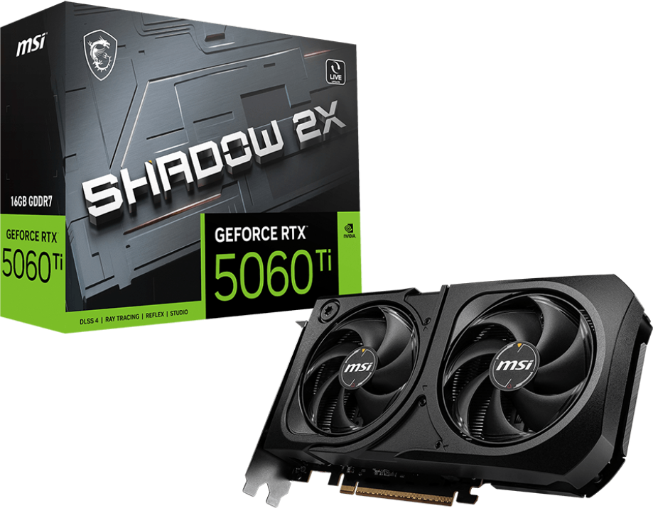 Видеокарта NVIDIA GeForce RTX 5060 Ti MSI 16Gb (RTX 5060 TI 16G SHADOW 2X PLUS)