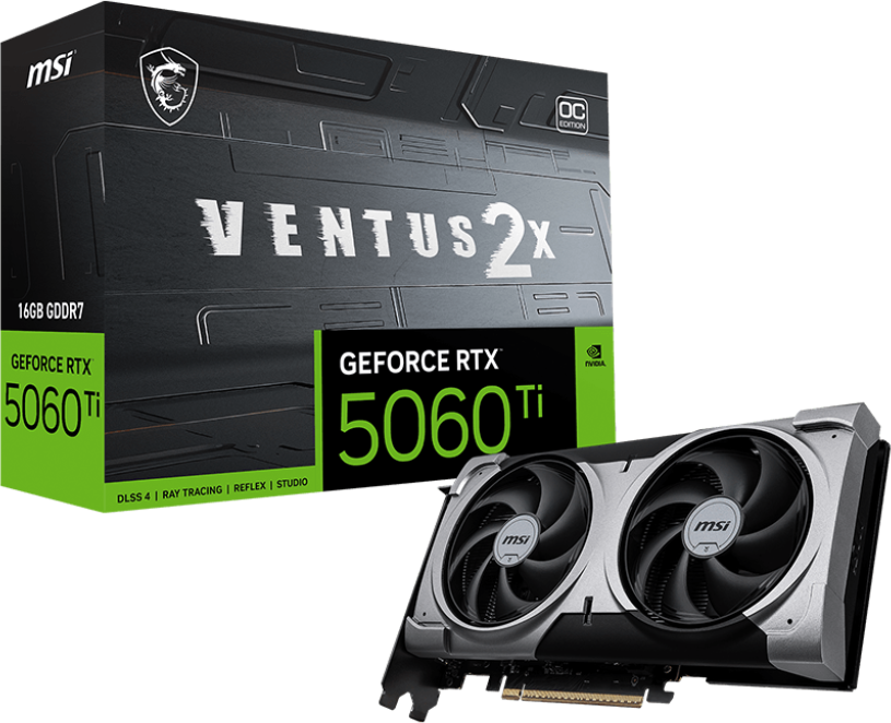 Видеокарта NVIDIA GeForce RTX 5060 Ti MSI OC 16Gb (RTX 5060 Ti 16G VENTUS 2X OC PLUS)