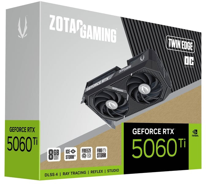 Видеокарта NVIDIA GeForce RTX 5060 Ti Zotac Twin Edge OC 8GB (ZT-B50610H-10M) по низкой цене с бесплатной доставкой по Москве (при покупке от 50 000 рублей). Вы можете купить за наличный и безналичный расчет, при этом стоимость не изменится.