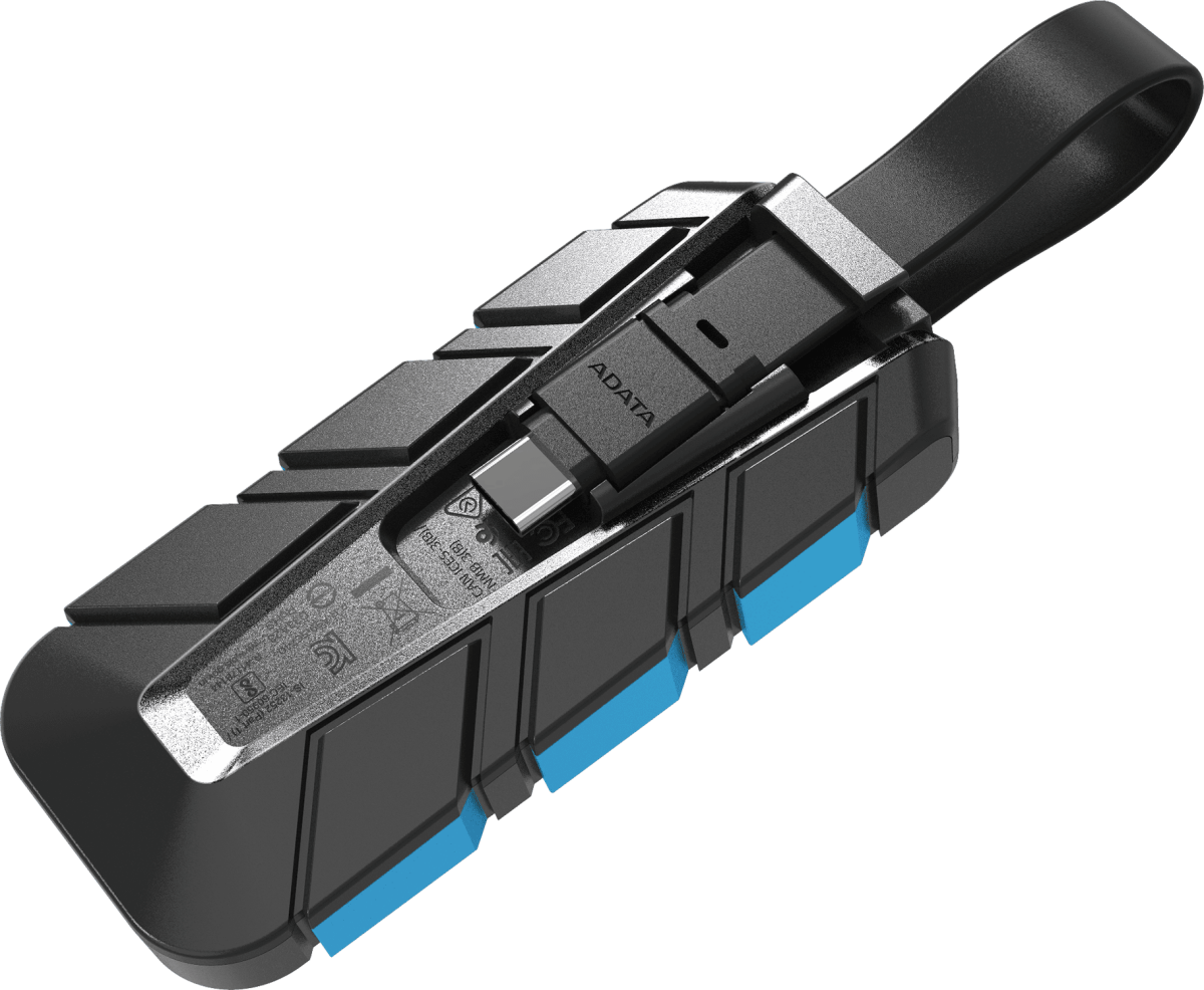 встроенный кабель USB Type-C, накопитель обладает устойчивостью к ударным нагрузкам при падении с высоты до 1.22 м (стандарт MIL-STD-810G 516.6)