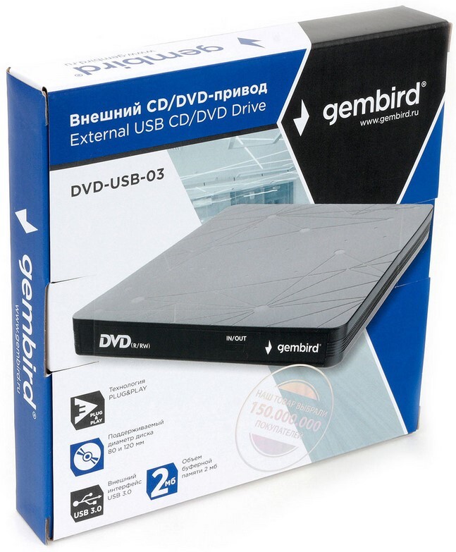 Внешний оптический привод Gembird DVD-USB-03C Black RTL по низкой цене с бесплатной доставкой по Москве (при покупке от 20 000 рублей). Вы можете купить за наличный и безналичный расчет, при этом стоимость не изменится.