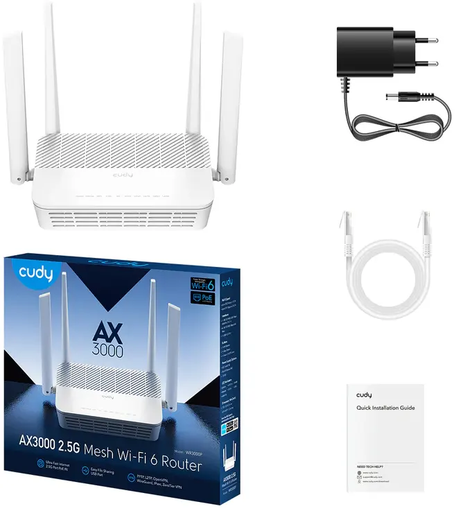 Wi-Fi маршрутизатор (роутер) Cudy WR3000P по низкой цене с бесплатной доставкой по Москве (при покупке от 20 000 рублей). Вы можете купить за наличный и безналичный расчет, при этом стоимость не изменится.