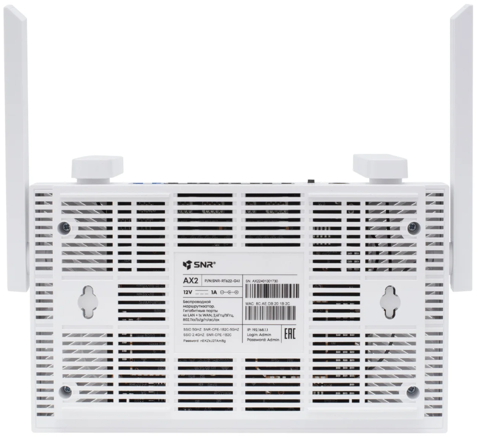Wi-Fi маршрутизатор (роутер) SNR RT622-G41 White по низкой цене с бесплатной доставкой по Москве (при покупке от 50 000 рублей). Вы можете купить за наличный и безналичный расчет, при этом стоимость не изменится.